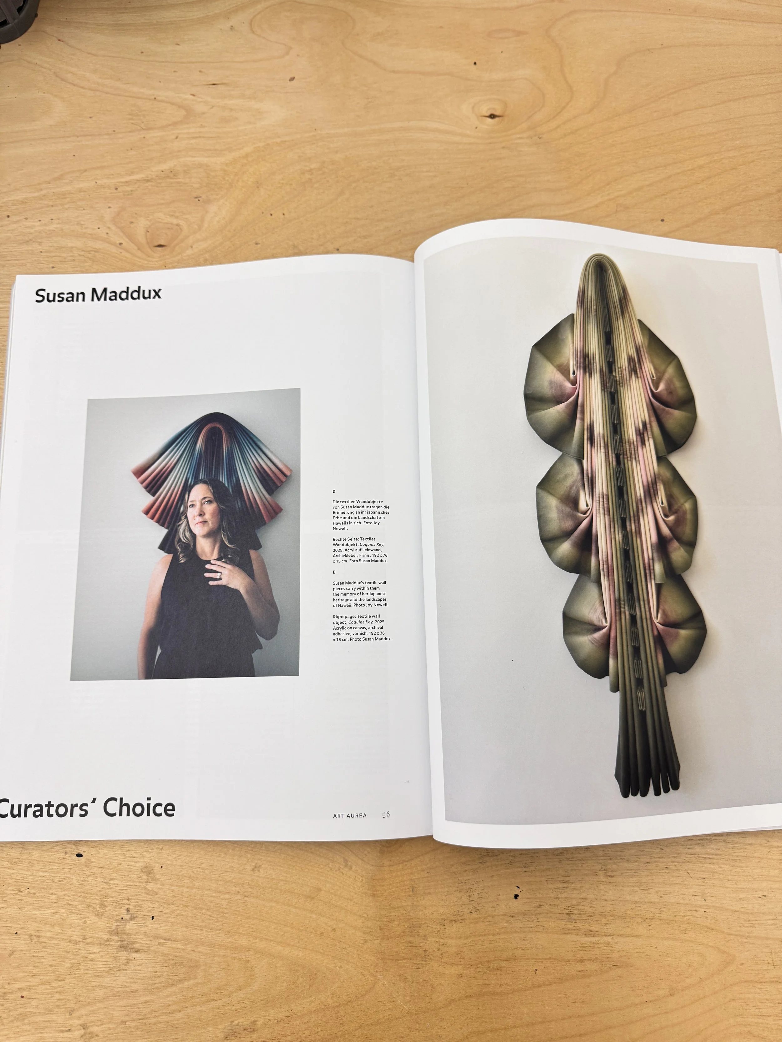 “The sensuous contours of Susan Maddux’s wall sculptures radiate a mysterious aura, evoking memories of places and times that quietly echo her Japanese heritage and her Hawaii upbringing. Through meticulous folding, she transforms canvas into fascinating sculptural forms. Infused with her masterful use of color. Suspended on the wall, they appear like alluring totems or contemporary icons, eliciting a spectrum of emotions in the viewer.” - Lesa Griffith
